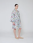 Short kimono with belt and front pockets.