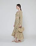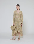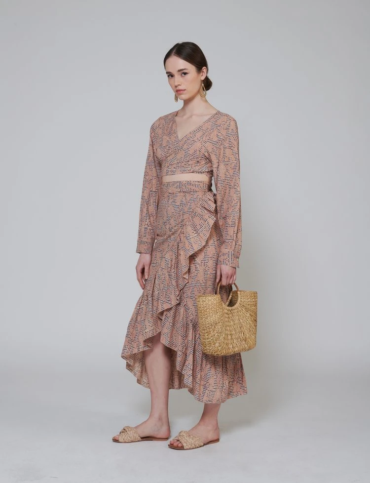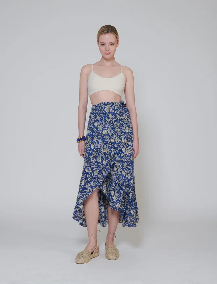Midi frill wrap around skirt blockprinted with vegetable colors